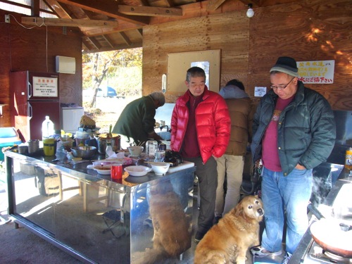 小雨が降り出し、急いでテント設営・・・夕飯準備!