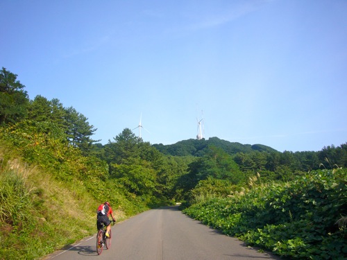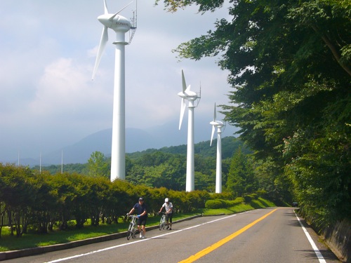 「登りは、もう少しだから頑張りましょう!」と、コナミの風車へ辿り着く
