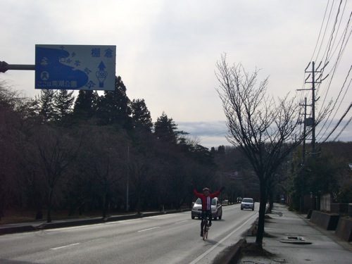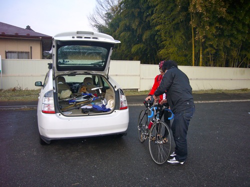 輪行袋、持って来てないし!(走り出せば、暖まるよ^^)