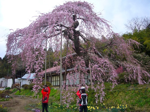 根回り5.8m、樹高15mの見事な枝垂れ桜は樹齢450年とか?