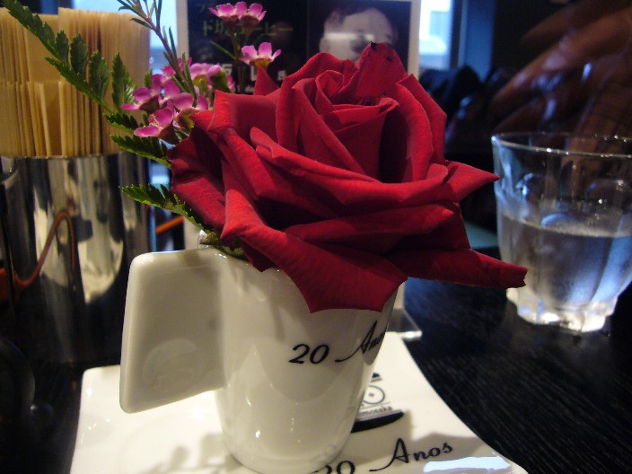 各テーブルには花が飾られてます。