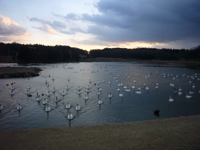 白鳥・・・誰かが来ると餌が貰えると思って集まってくるんだろうね^^