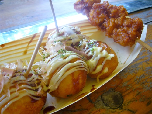 焼き鳥・焼きそば・たこ焼きコーナーのお手伝いは暑くて辛そう><