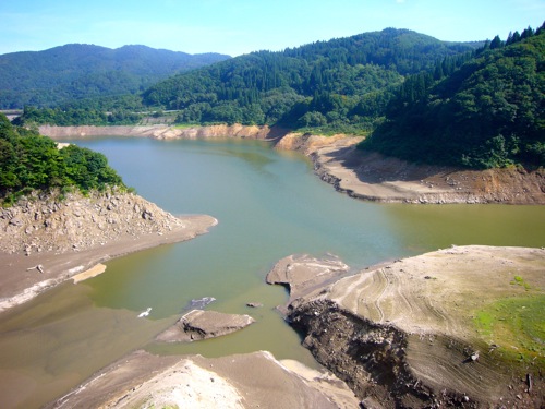 でも、月山湖は渇水で悲しい光景w