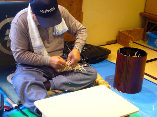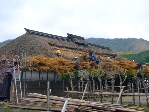 茅葺き屋根の葺き替えをしていました!