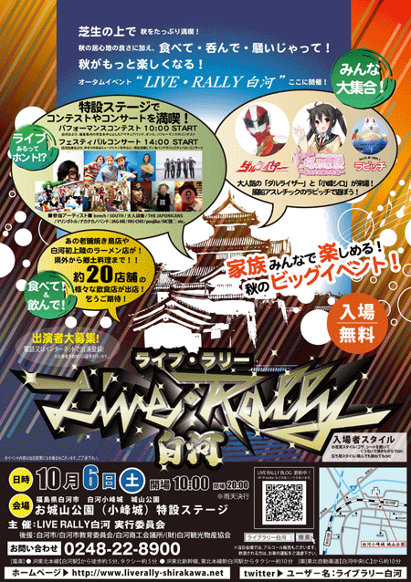 10月6日(土)お城山公園(小峰城)特設ステージにて「ライブ・ラリー