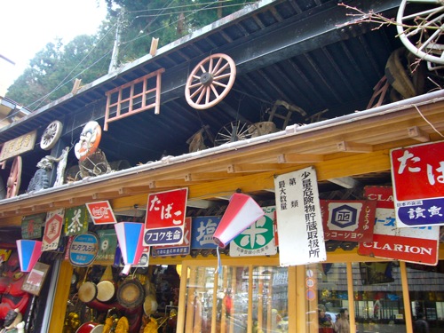 骨董品屋さん?古い看板が所狭しと下がっていました!