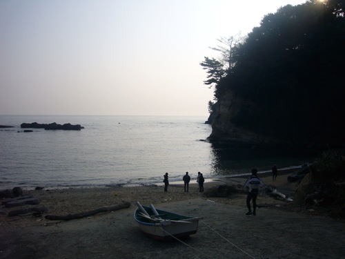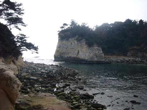 五浦海岸の六角堂がある浜辺。