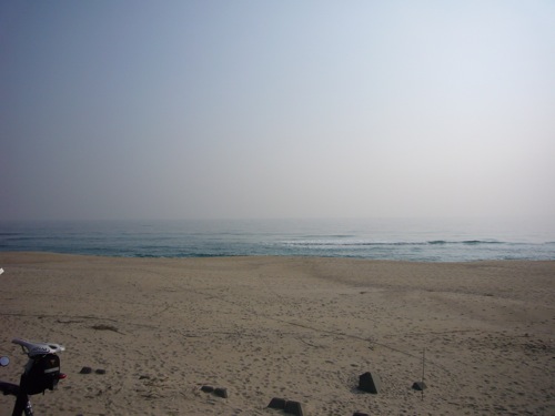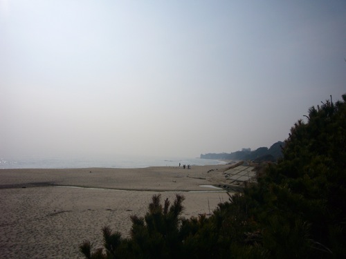 日本百選に選ばれた海岸で、はなぴーちゃんを待ちます。