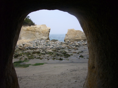 洞窟の先も開いていて、別な景色の海が見えます。