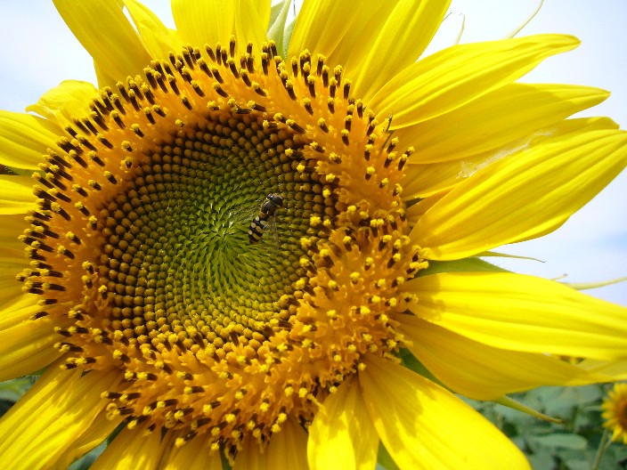 アップで向日葵と蜂