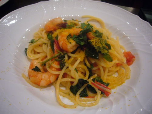 マルテッロランチのパスタは「エビとモロヘイヤのサルディーニャ産カラス